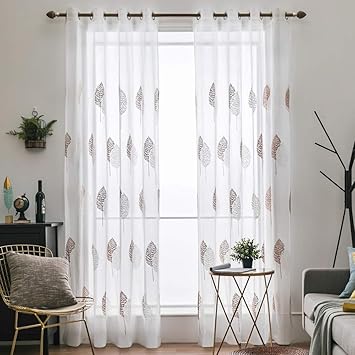 2019 gwell elegant baumblatt druck vorhang blickdicht schal mit ösen top qualität gardine für wohnzimmer schlafzimmer grau cream 1er pack.
