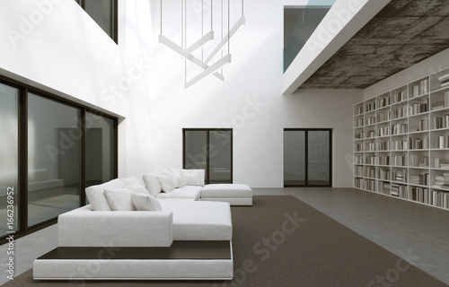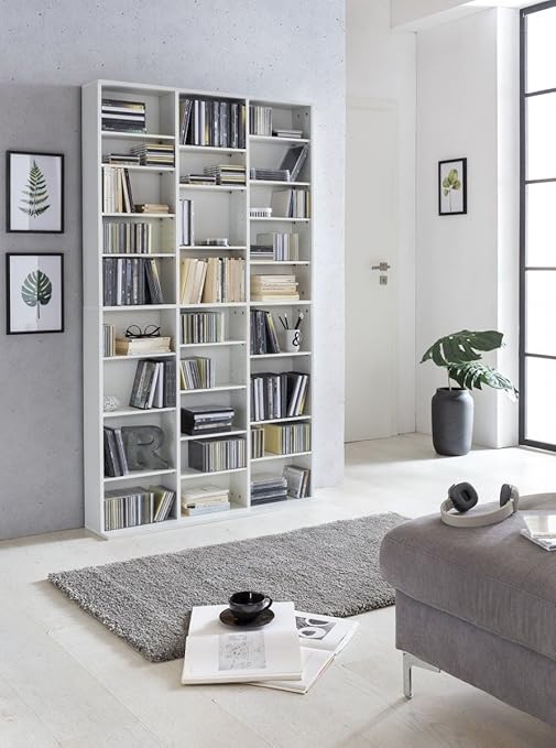 Das klassische bibliothek design in weiß mit quadratischen oder rechteckigen abteilung passt zu jedem.