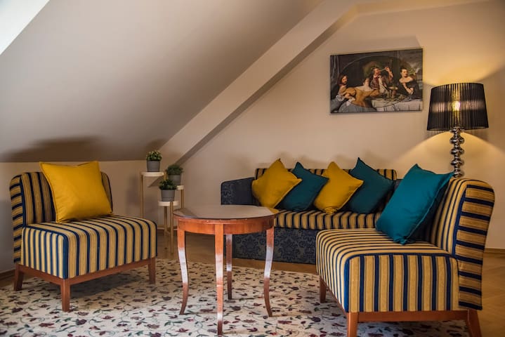 Im wohnzimmer finden sie von hand angefertigte sofas sessel couchtische oder eine schöne biedermeier vitrine.