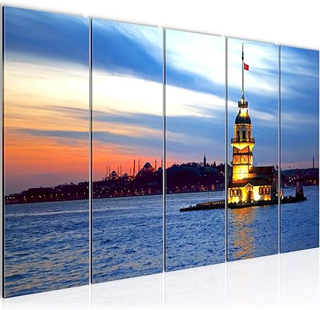Bilder leuchtturm türkei wandbild 200 x 100 cm vlies leinwand bild xxl format wandbilder wohnzimmer wohnung deko kunstdrucke violett 5 teilig made in germany fertig zum aufhängen 604851b.