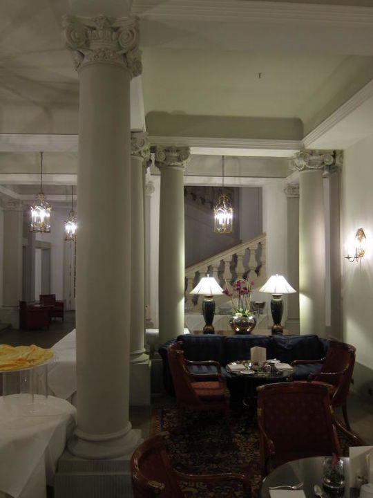 So sitzt man im innenraum des leger luxuriösen retro cafés gleichzeitig in der lobby des hotels.