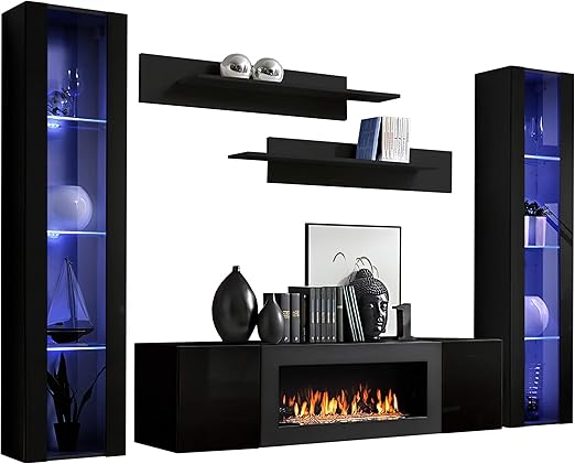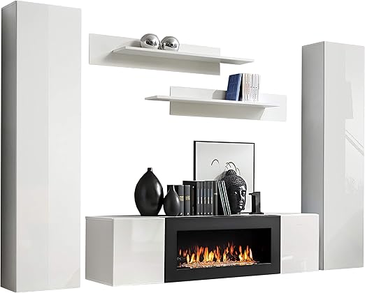 Versand 70 sparen elegante glanzlack schrankwand für das wohnzimmer mit behaglichem bioethanol kamin tv schrank unterschrank und regalen.