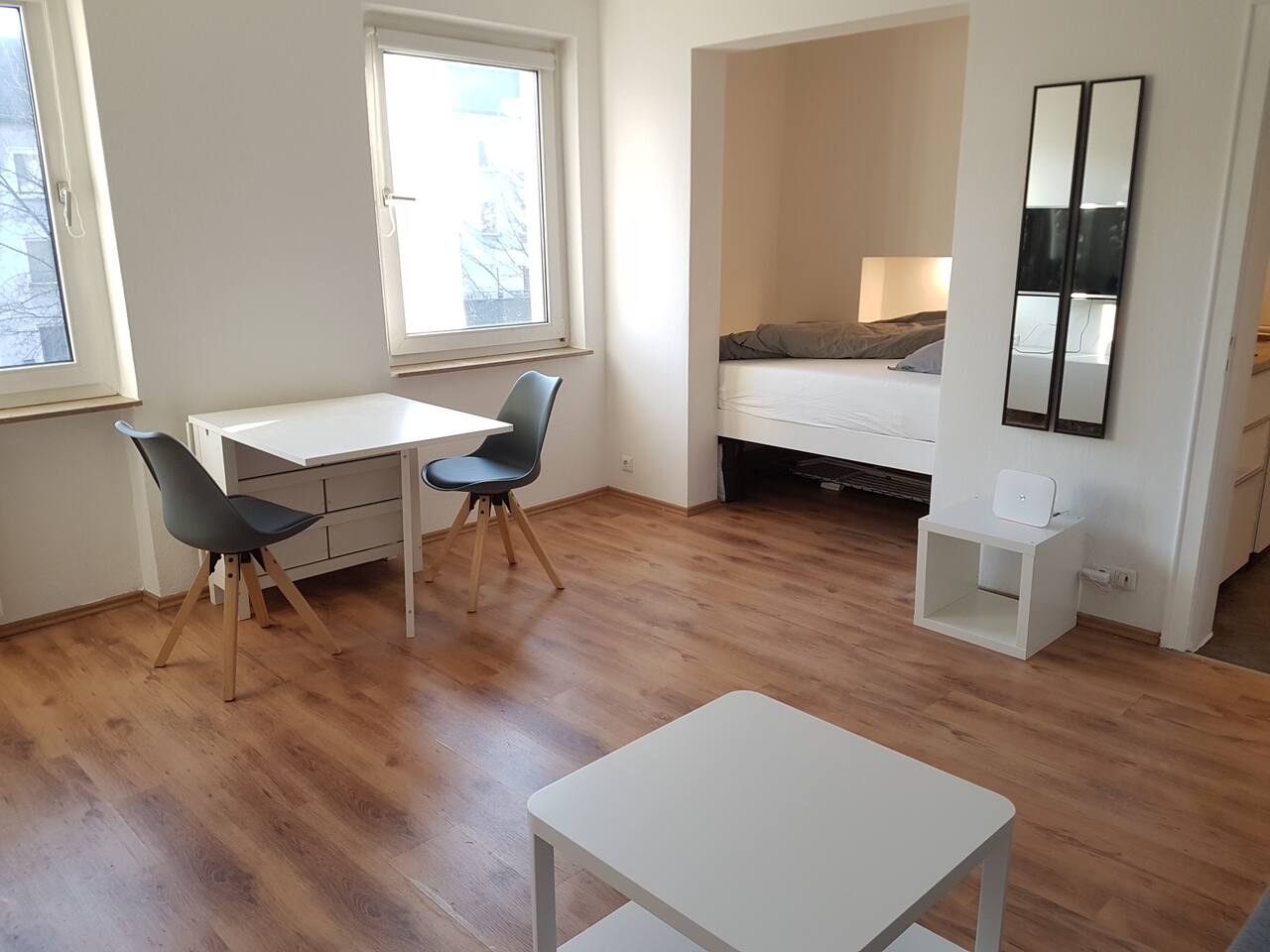 Im oberen stockwerk befindet sich das dritte schlafzimmer ein bad und das 7. Erstbezug einer neuen komplett eingerichteten geräumigen 2 z wohnung mit großer sehr moderner wohnküche schönem schlafzimmer mit balkon edlem bad wc und exklusivem hängeboden mit wohnzimmer und schlafnische besonders hochwertige ausführung. Diesen raumteiler schieben sie tagsüber einfach mit einem handgriff zur seite ideal wenn sie ein schlafsofa nutzen das sich tagsüber in eine einladende sitzgelegenheit verwandelt.