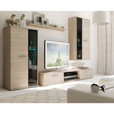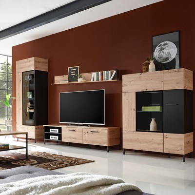 Wohnwand media light diese stilechte anbauwand in einem ausdrucksstarkem design mit hochwertiger glasfront ist ein absolutes schmuckstück in jedem wohnzimmer. 1 tv board mit 4 offenen fächern. Sie bietet daneben ein attraktives stauraumangebot.