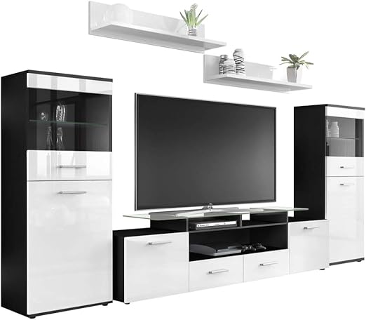 Vladon wohnzimmer wohnwand anbauwand schrankwand almada korpus in schwarz matt front in schwarz hochglanz günstig auf amazon de. Wohnwand rango xl modernes wohnzimmer set design anbauwand schrankwand mediawand vitrine tv lowboard weiß ohne beleuchtung günstig auf amazon de. Wohnwand media light diese stilechte anbauwand in einem ausdrucksstarkem design mit hochwertiger glasfront ist ein absolutes schmuckstück in jedem wohnzimmer.