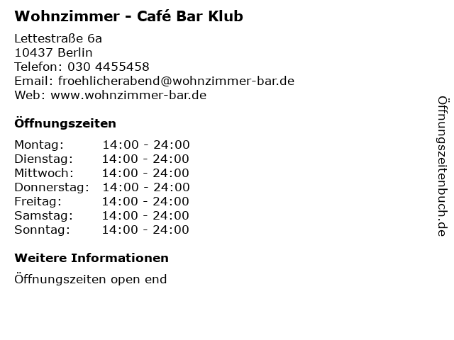 Wohnzimmer lettestraße 6 www wohnzimmer bar de. Die wohnzimmer bar ist jeden tag ab 10 uhr für sie geöffnet. There s coffee and pastries in the m.