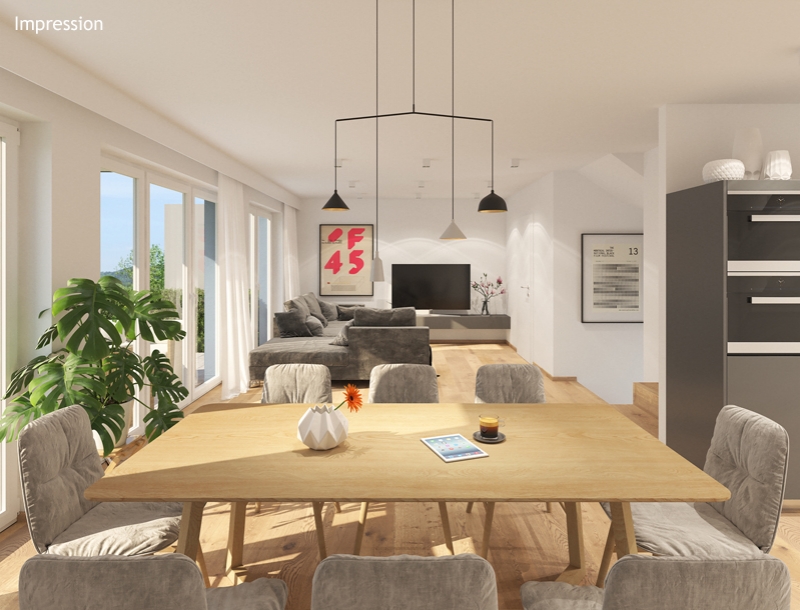 Besonders wenn wohnzimmer essplatz und küche zum open space ineinander übergehen lohnt es sich mehrere unterschiedliche lichtquellen einzusetzen. Mengen ist ein guter ausgangspunkt für z b. Die geschmackvolle doppelhaushälfte ist nach süd west ausgerichtet.
