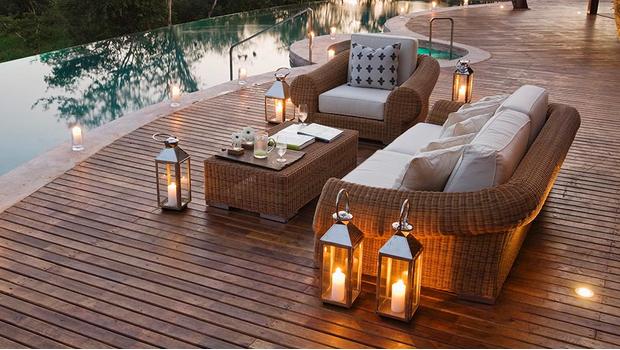 Inspiration für kleinen garten und mini terrasse vom schlafzimmer zum pool. Erhol dich ein bisschen und vergiss die welt da draußen. Ihr gemütliches wohnzimmer draußen auf die terrasse mit interessanter deckenlampe.