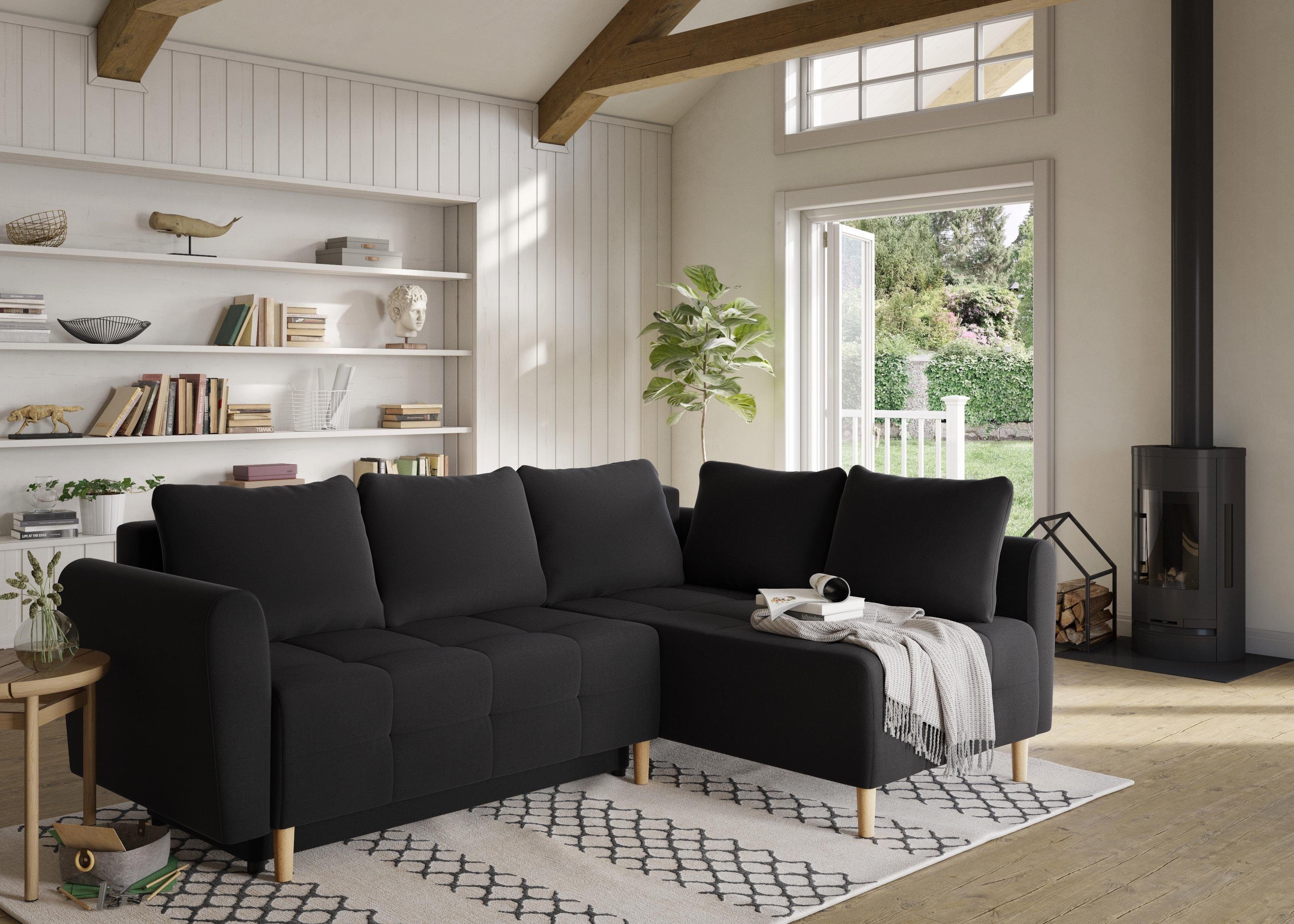 09 02 2018 ein neues sofa muss her. Die neue couch muss bequem sein eine recamiere besitzen und nicht ganz so pfotenempfindlich sein. Kleines wohnzimmer in schwarz und weiß mit blauem teppich als akzent.