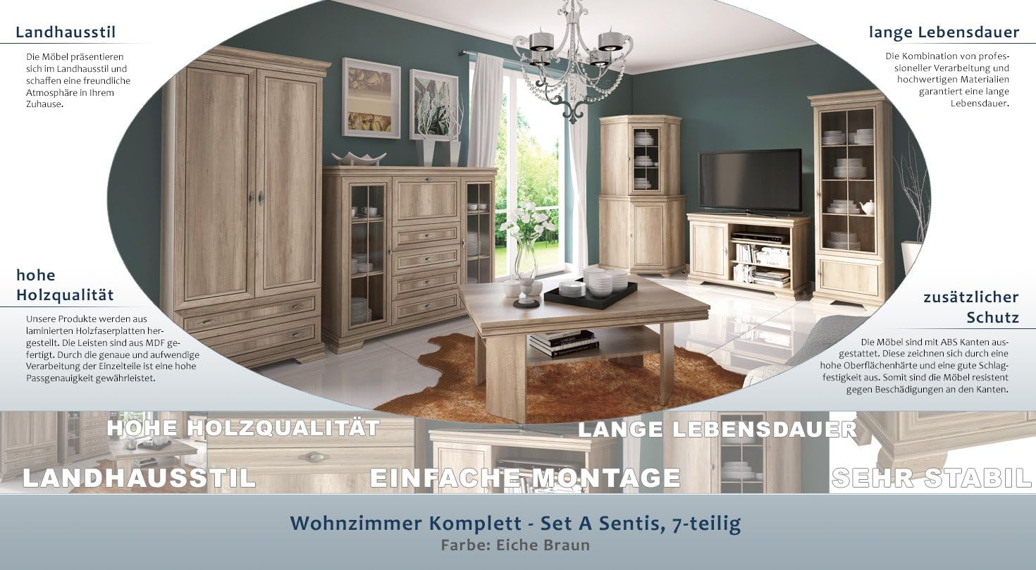 Wohnzimmer komplett set a comillas 12 teilig farbe. Wohnzimmer komplett set b manase 10 teilig farbe. Riviera eiche dunkelbraun.