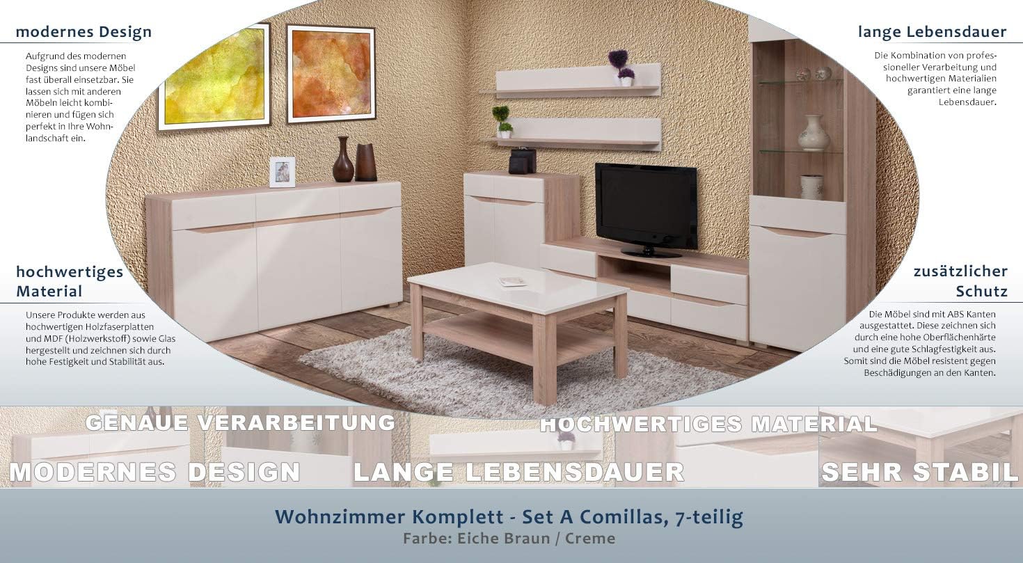 Eiche braun creme. Modern und mit einer fülle an tollen kombinationsmöglichkeiten präsentiert sich das attraktive wohnzimmer kimolos. Zeigt wohnzimmer komplett set a mit fernseher und dekoration diese sind im kaufpreis des sets nicht enthalten.