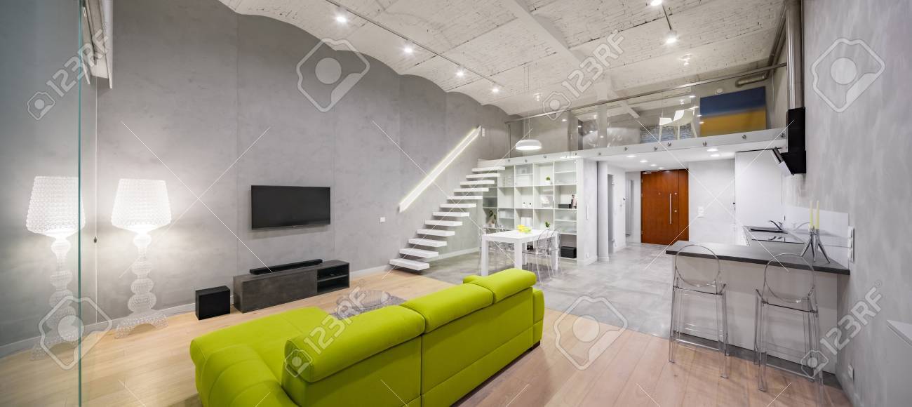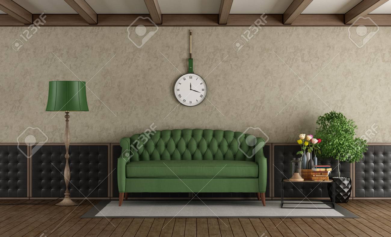Wohnzimmer Mit Grünem Sofa