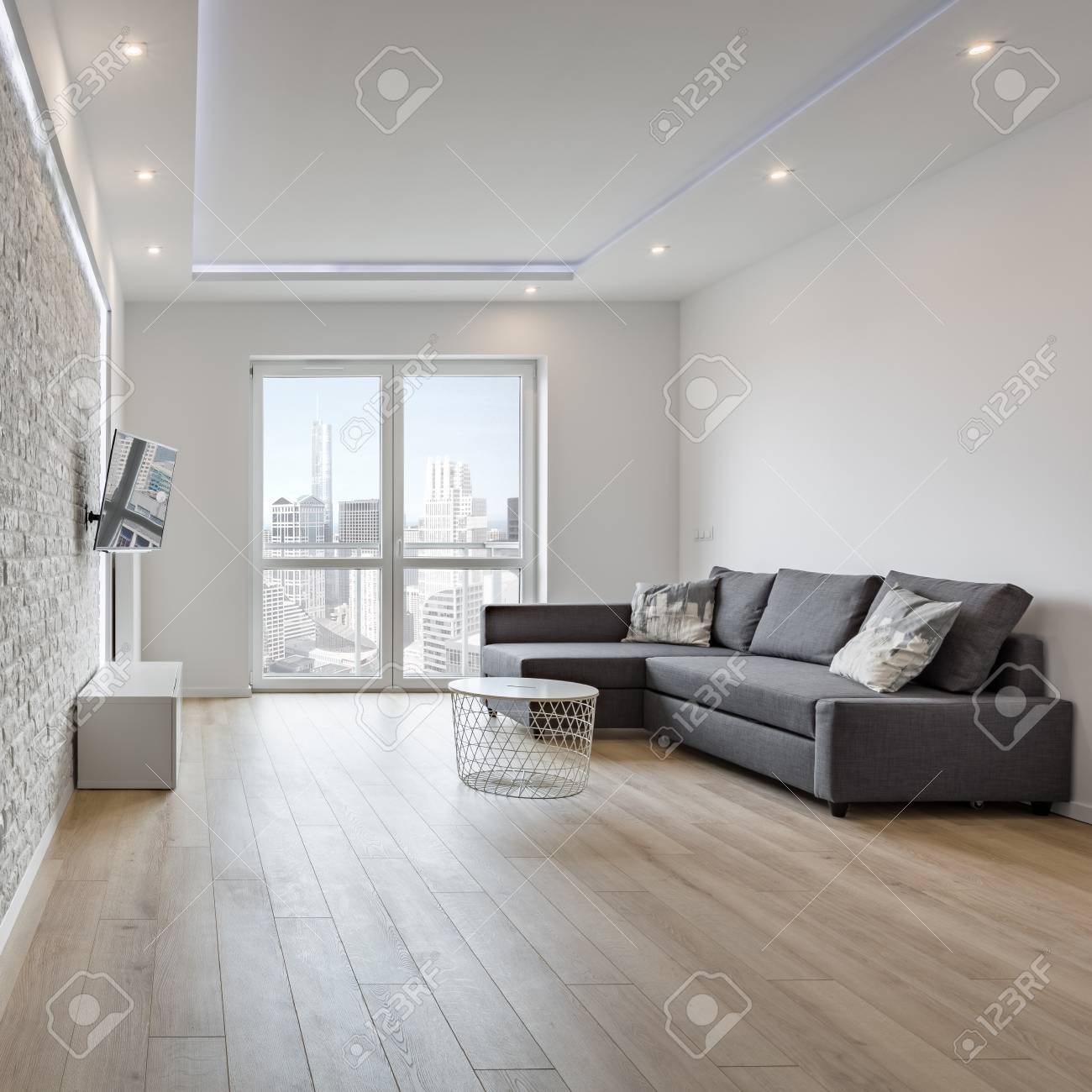 Wohnzimmer Mit Grauem Sofa