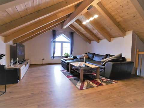 Von der galerie aus können sie sich mit ihren liebsten im wohnzimmer.