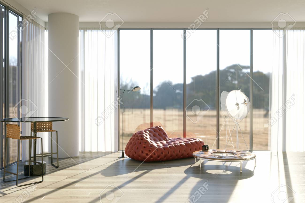 Wohnzimmer mit rotem sofa. Extravagantes wohnzimmer interieur in rot weiß. Es weckt gedanken und vorstellungen von schlaf entspannung lesen fernsehen und anderen beschäftigungen die wir gern haben für die aber trotzdem nicht viel zeit finden. Buntes gemälde als addition zu den roten wohnzimmer möbeln.