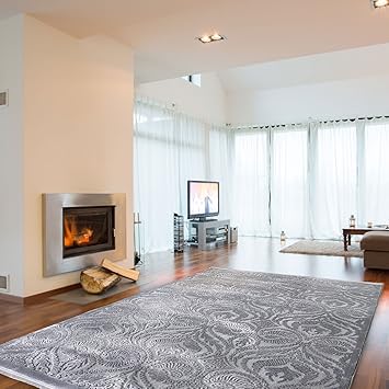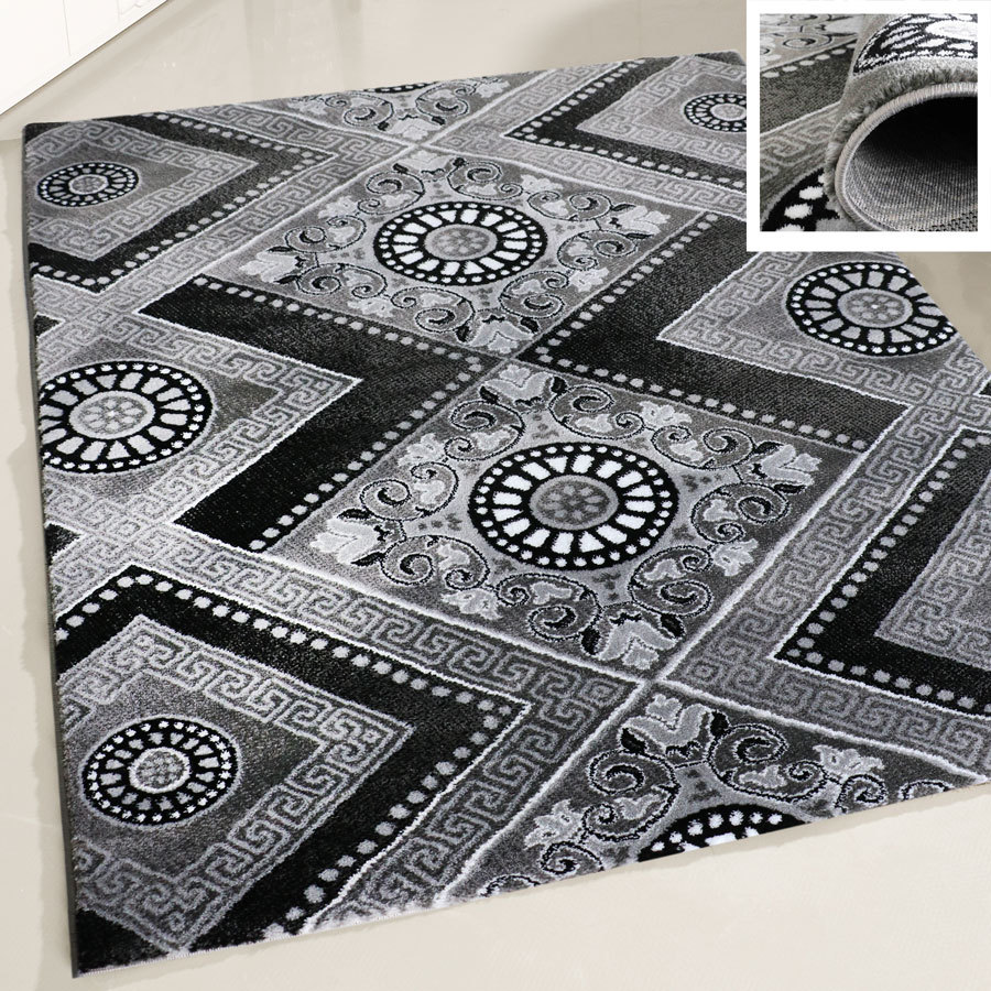 Kurzflorteppich teppich modern designer wohnzimmer versace muster barock motiv schwarz grau weiß maße 200 c.