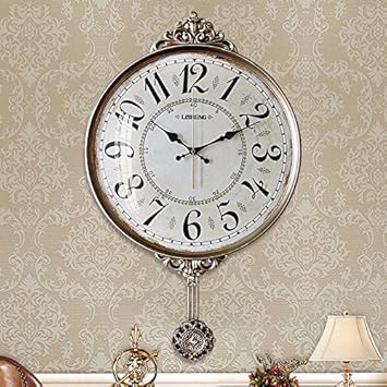 Hyxl europäische retro wanduhr mit pendel kreativ mute antiken stil funk wanduhr uhren für wohnzimmer kunst dekoration f 16inch.